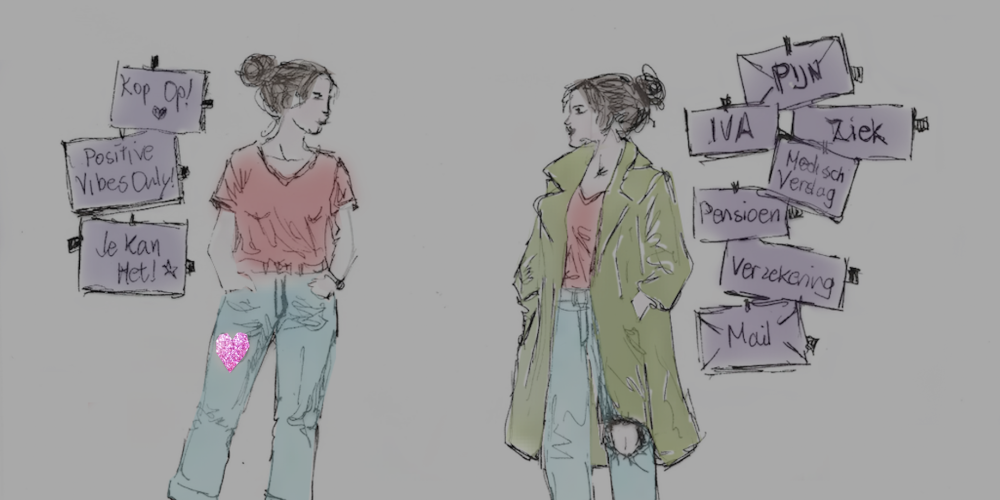 Geef twee mensen dezelfde spijkerbroek met hetzelfde gat en ieder één voucher. De één koopt glitterpatches en roept: ‘Kijk, opgelost. Er is geen gat!’ De ander denkt: laat dat gat maar zitten, ik koop een jas tegen de kou die komt. En daarmee is dit de kern van mijn laatste column. Beide strategieën zijn gerechtvaardigd. Eerst hoopte ik ook dat de longschade zou verdwijnen, nu erken ik dat long covid PEM blijft en richt ik me op wat nodig is om ermee te leven. Deze uitkering geeft mij de ruimte om te stoppen met de doorduwmodus en te beginnen met dragen.